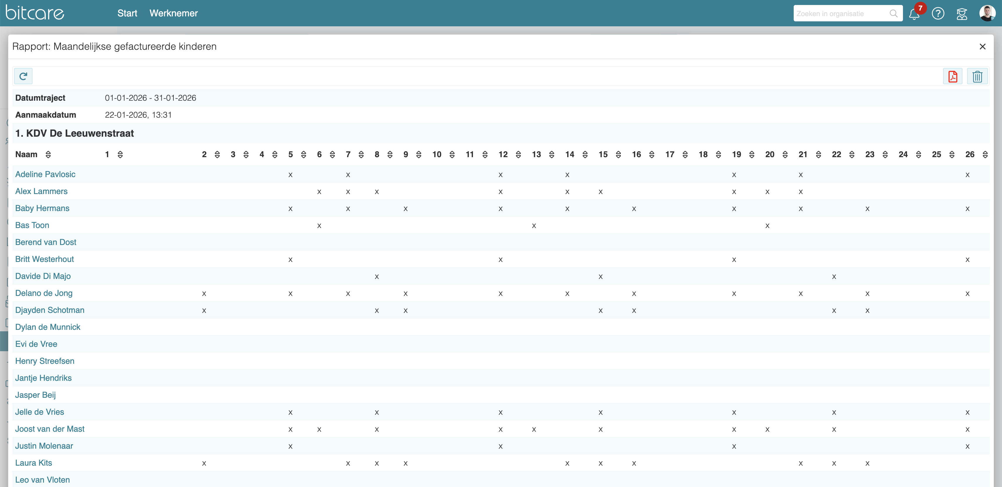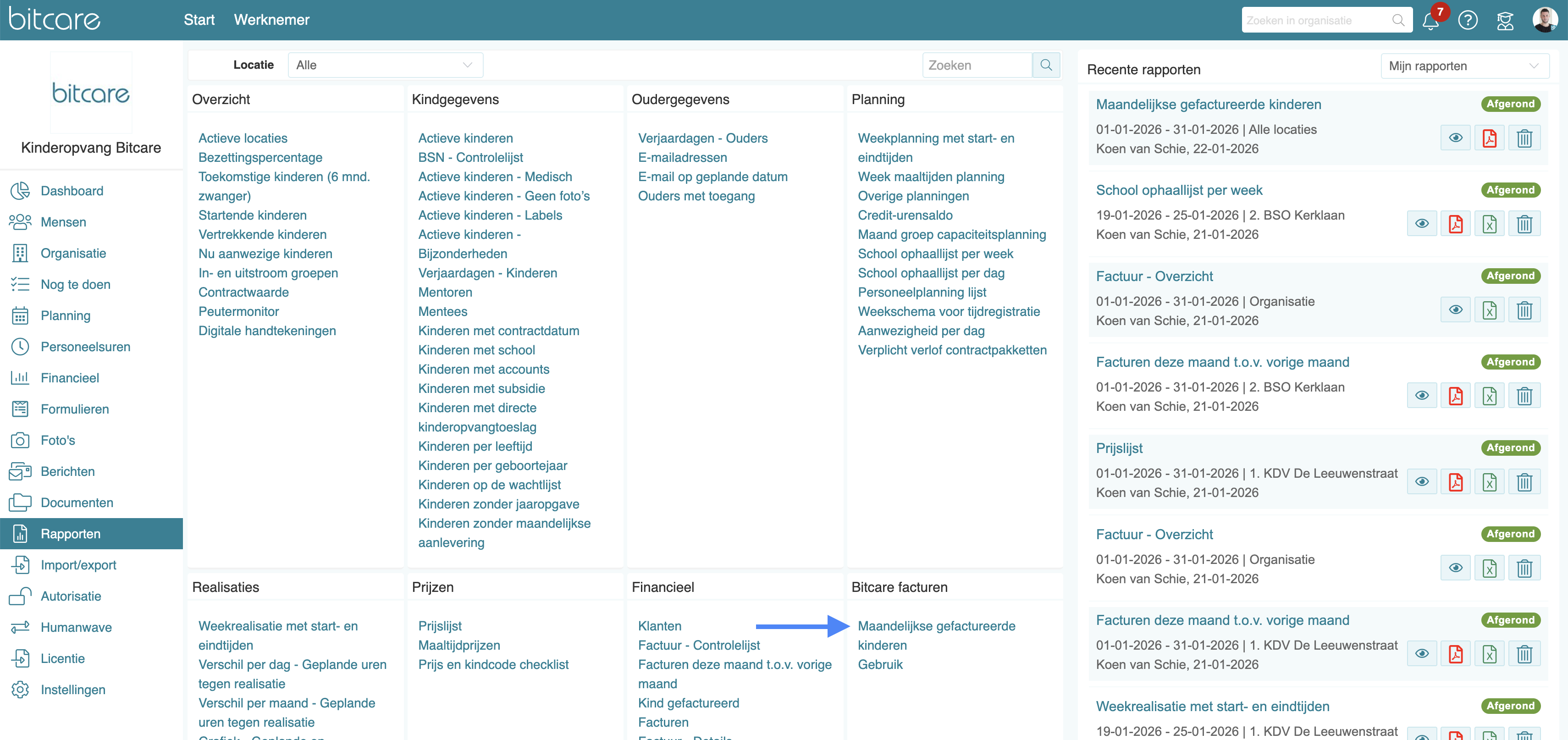 Je kunt ten alle tijden op eenvoudige wijze de Bitcare factuur controleren via het rapport 'Maandelijkse gefactureerde kinderen'.