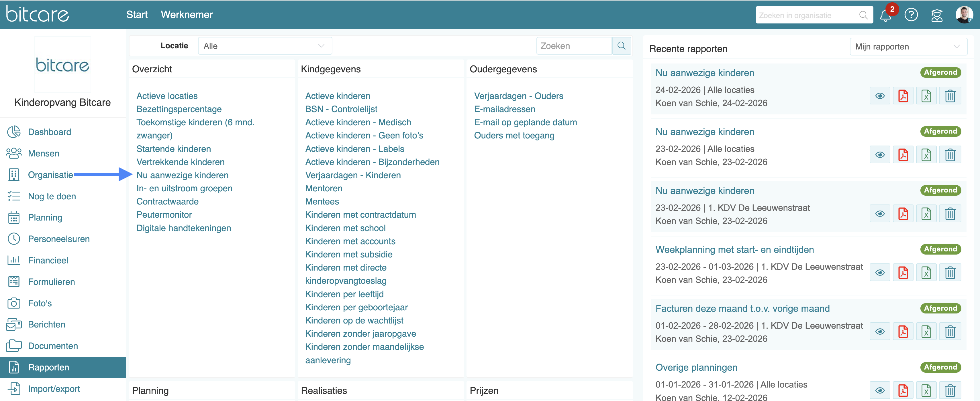 Via het rapport 'Nu aanwezige kinderen' heb je altijd een realtime beeld van wie er in het pand aanwezig zijn.